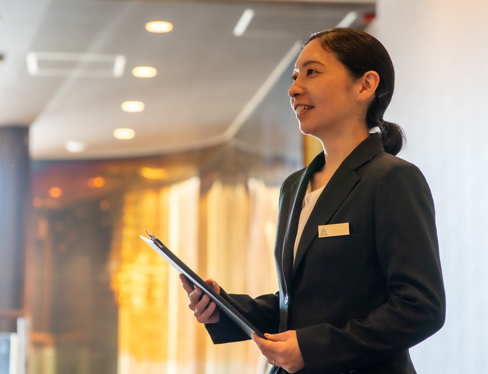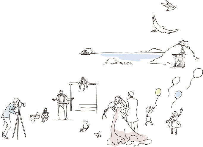 おふたりとゲストにとって、特別な一日を滞りなくお過ごし頂くため、スタッフはおもてなしのプロフェッショナルとしてゲストをお迎え致します。