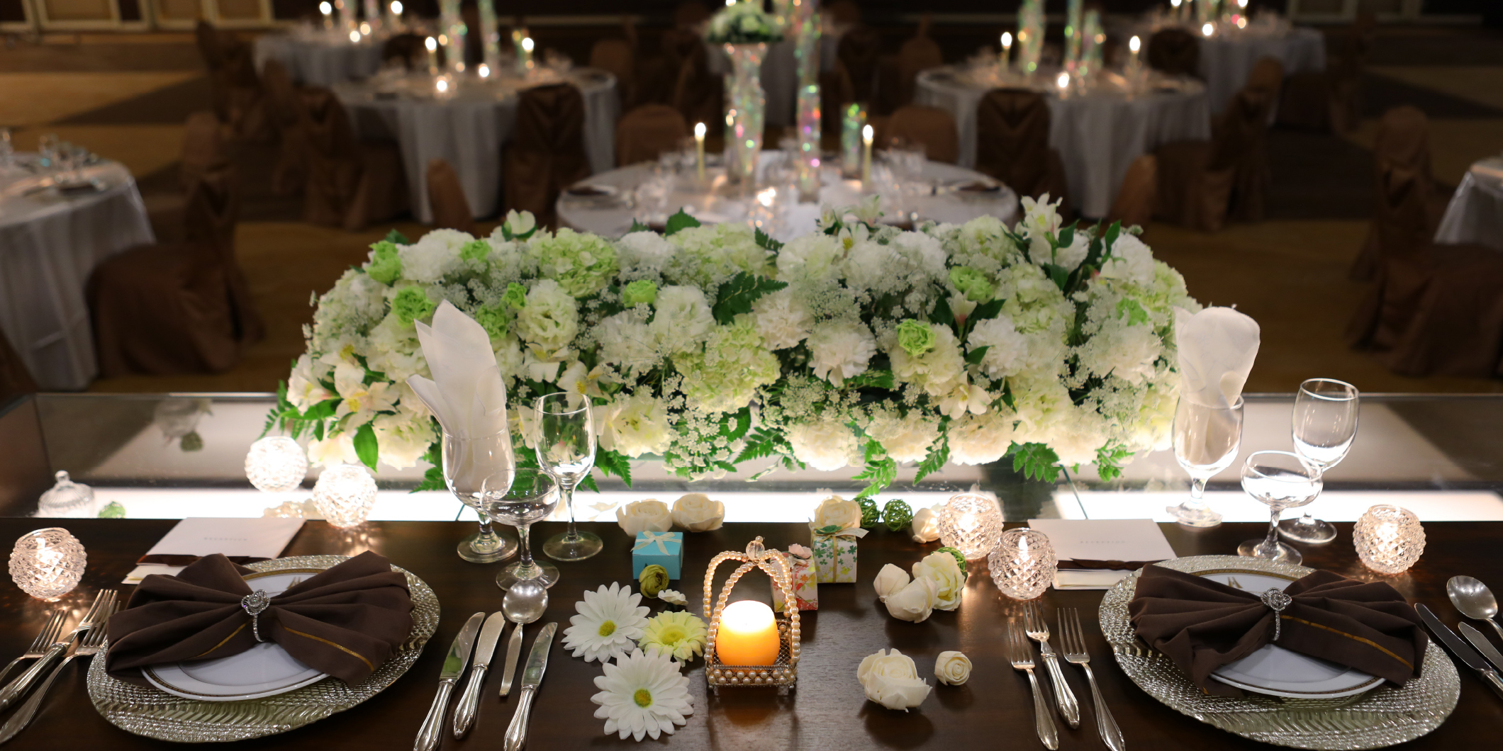 天井が高く開放的なバンケットだからできるこだわりの演出。