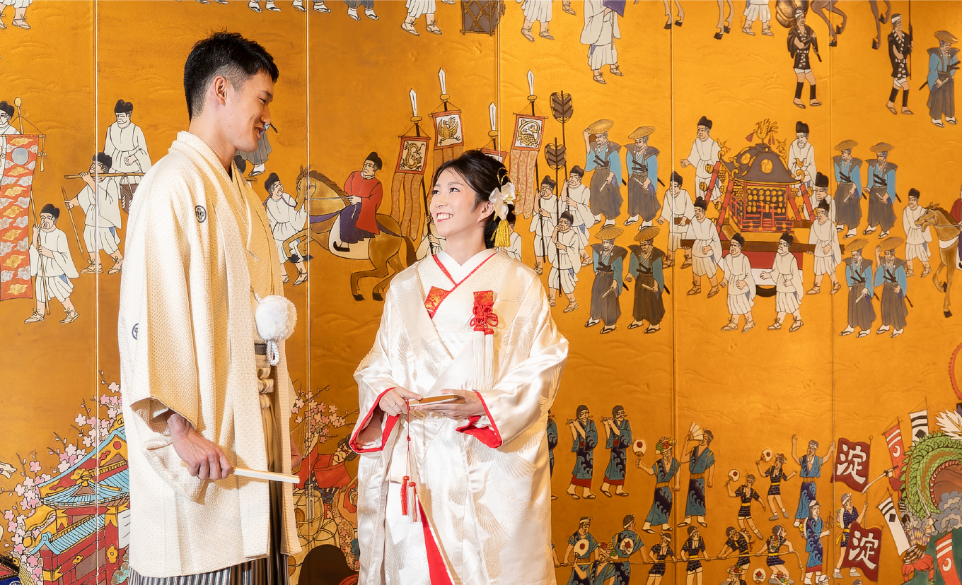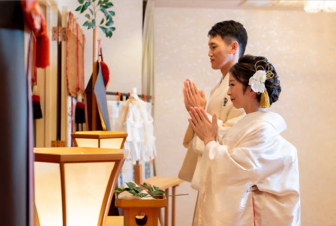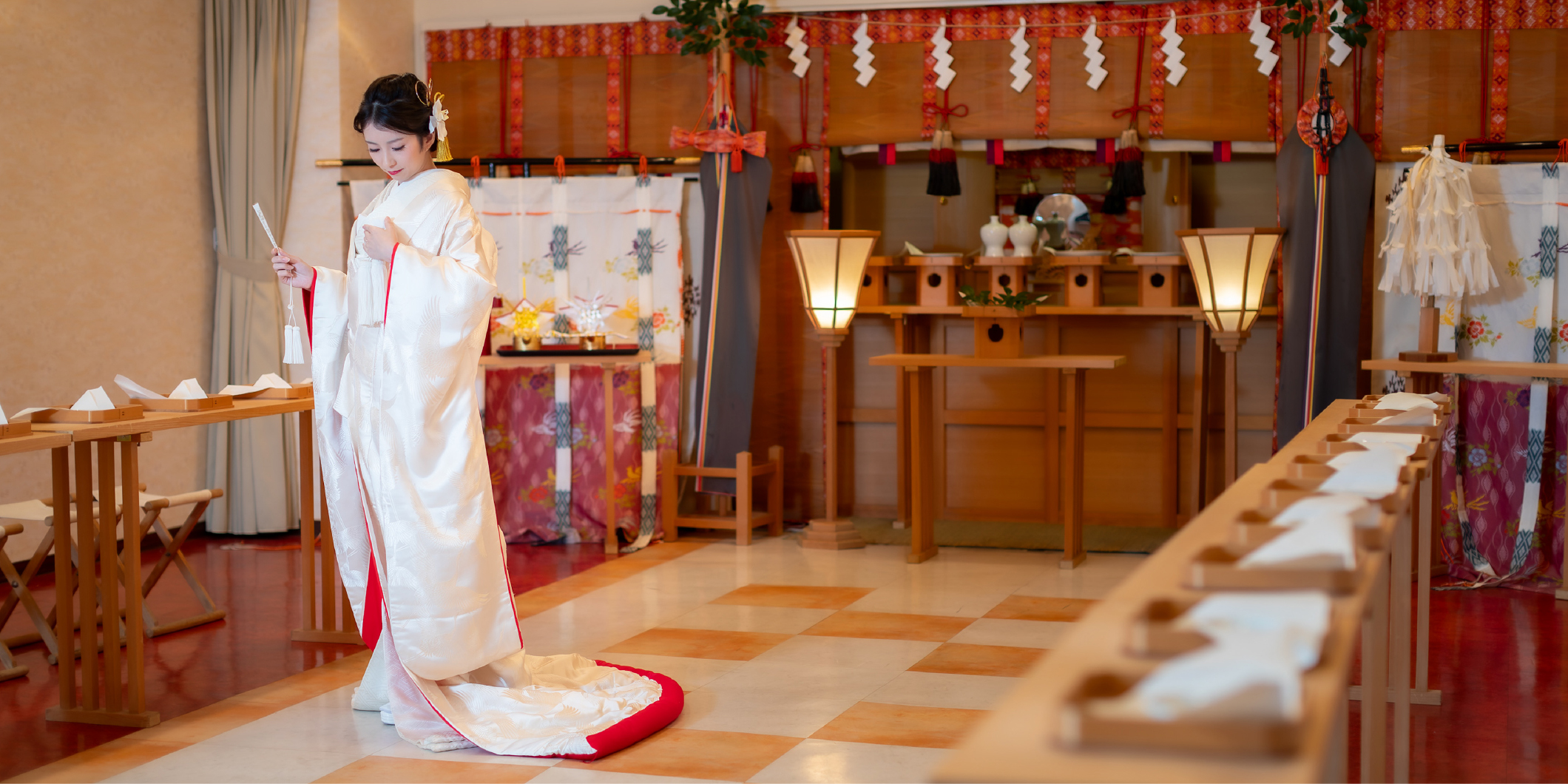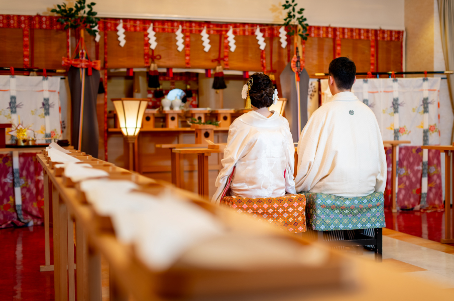 古式ゆかしい神前の挙式は、格調高くおごそかに。